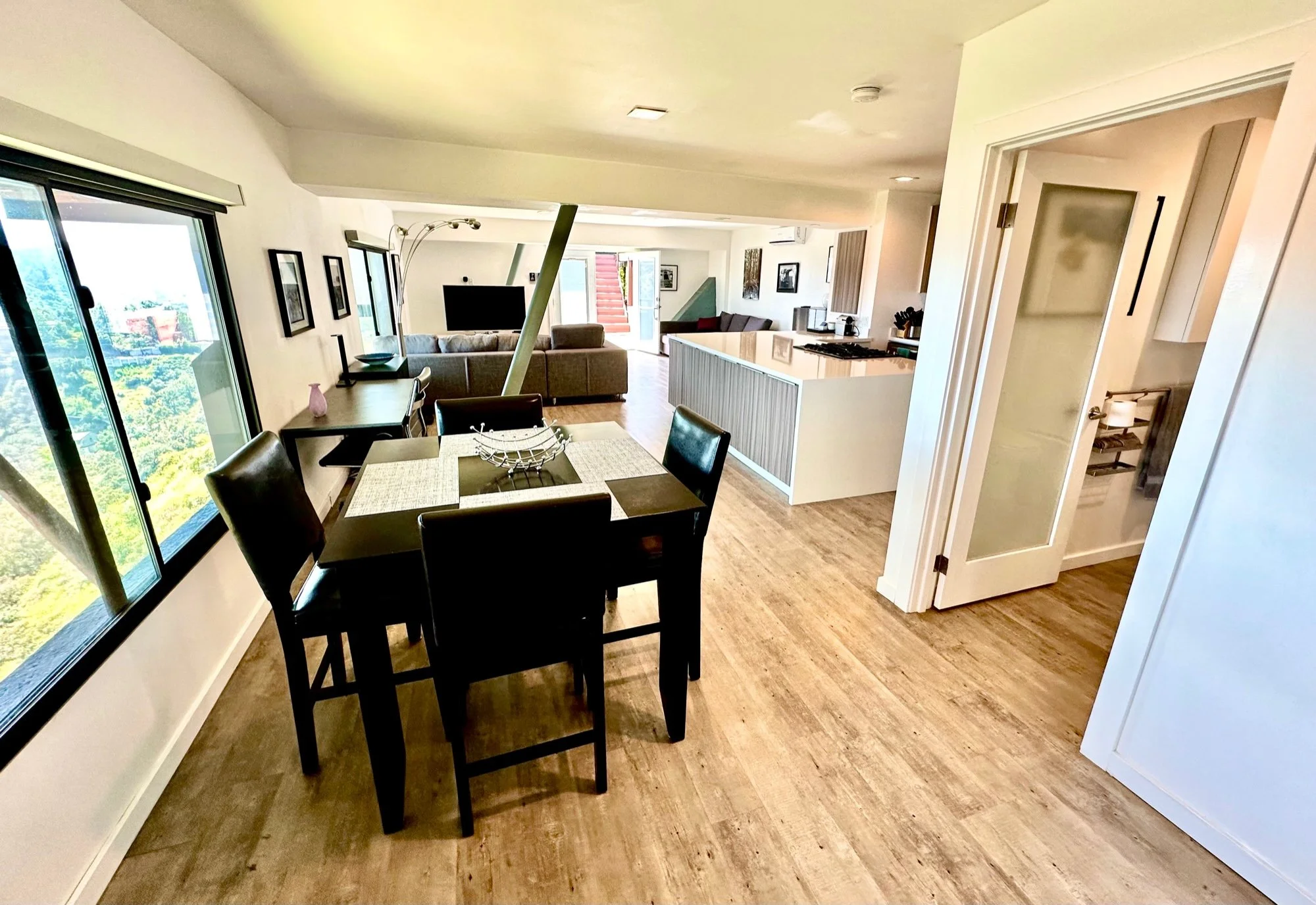 With a spacious living room/ dining room area, modern kitchen, and large bedroom this home has million dollar views from every room. You also have a massive walk-in closet with a private washer & dryer, a large private deck to have your morning coffee on, and lots of privacy in this quiet guesthouse on celebrity row.