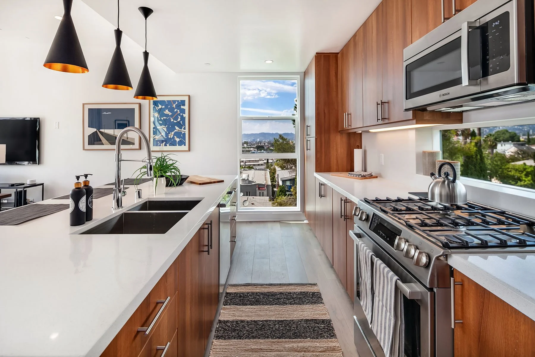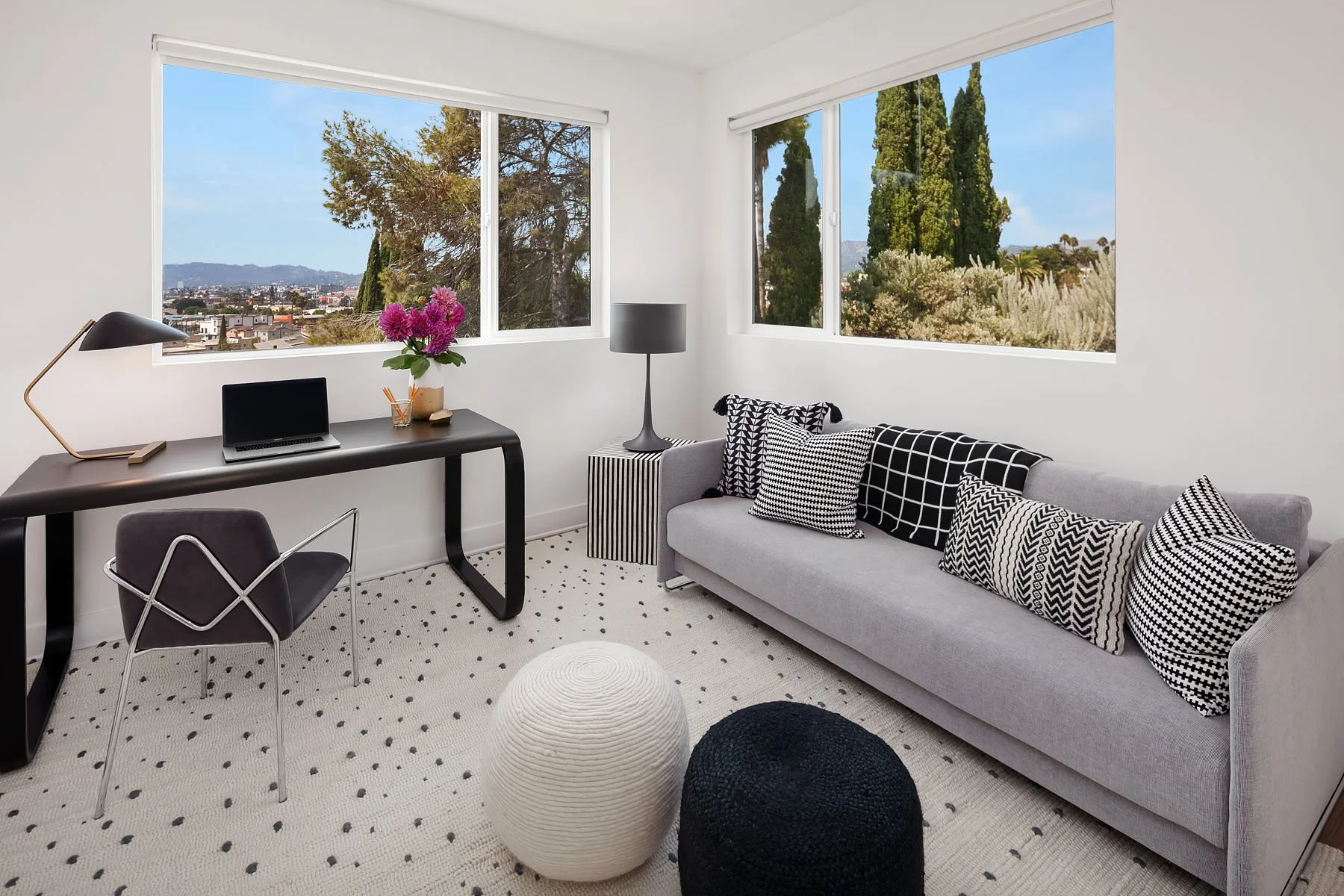 This beautiful townhouse located in trendy Silverlake sits atop the City providing great views overlooking Downtown Los Angeles, Los Feliz, Echo Park, Hollywood, and the countless markets & stores on Silverlake Boulevard.